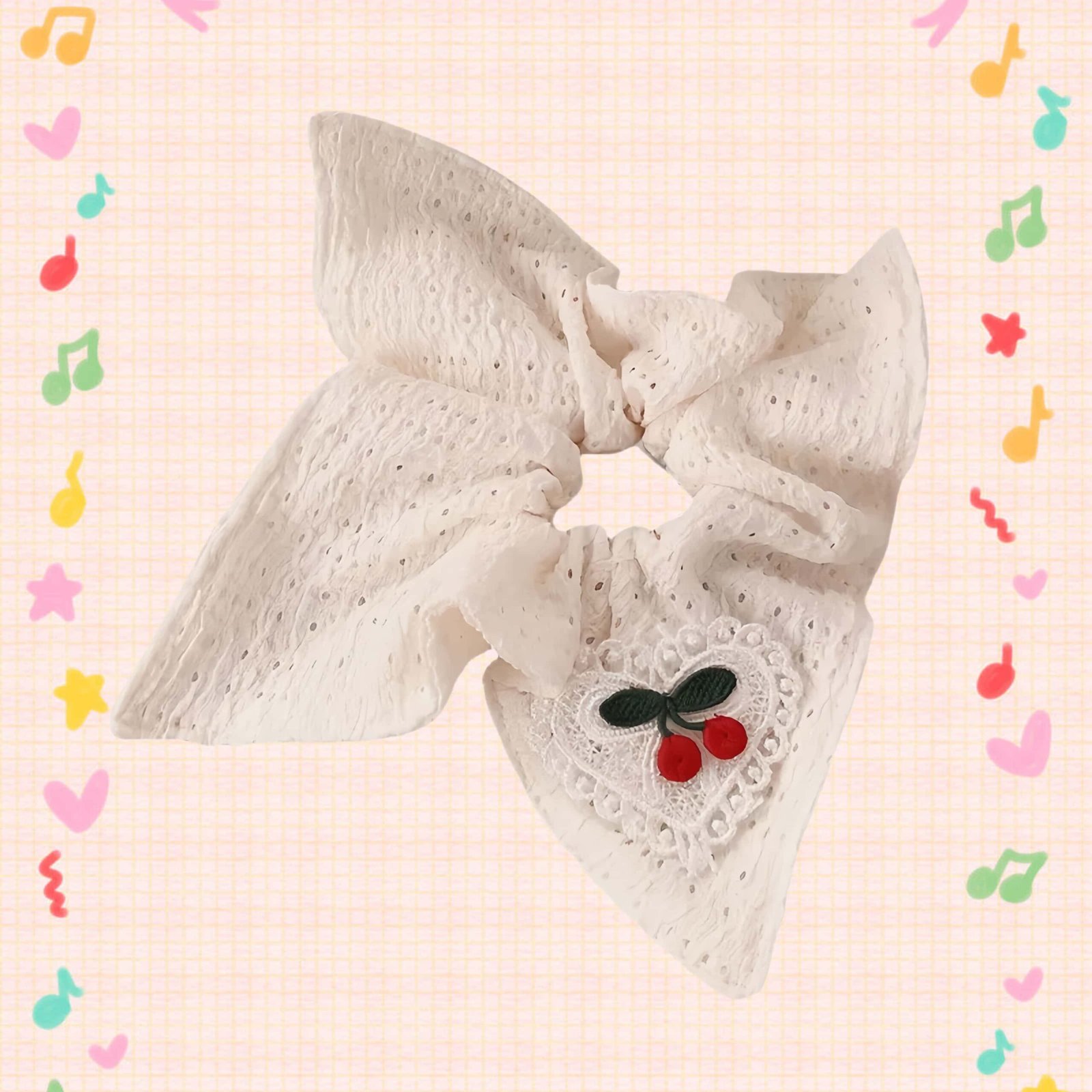 Add a playful yet elegant accent to your hairstyle with the Cherry Beige Tie. This charming scarf-style scrunchie features a soft beige base adorned with delicate cherry prints, blending sweetness and sophistication in one accessory. The attached flowing ribbon adds movement and style, perfect for ponytails, buns, or wrist wear. Lightweight and gentle on hair, it offers a secure hold without pulling or damage. Whether you’re dressing up a casual outfit or adding a feminine touch to your day, the Cherry Beige Tie brings effortless charm to every look. A must-have for soft, romantic styling.